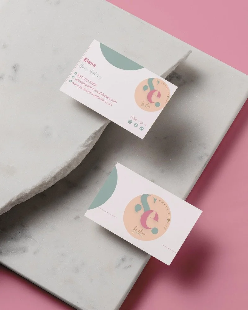 I designed the Sweet Enough Bakes logo, business cards, and visual identity. The brand’s colors, typography, and visuals were chosen to reflect the warmth and care that goes into each product, balancing the homemade feel with a polished, professional design.